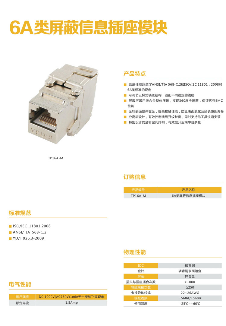 6A类屏蔽信息插座模块