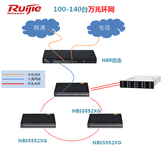 机房布线网络,3台NBS5552XG互联,NBR智能流控