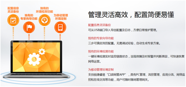 新RG-NBR系列高性能应用流控网关是专为网吧、企业用户设计的千兆路由器产品。覆盖出口带宽600兆以内1000人以下的网络环境。新RG-NBR系列网关支持ADSL线路多拨、WAN口扩展、线路叠加、网吧专家向导等网吧特色功能外,同时也支持出色的应用流控、应用分流、进程流控、攻击防御等技术。